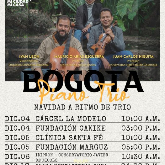 Conciertos de Bogotá Piano Trio en varios escenarios, como ganadores de la Beca LEP Universos Navideños del Distrito.