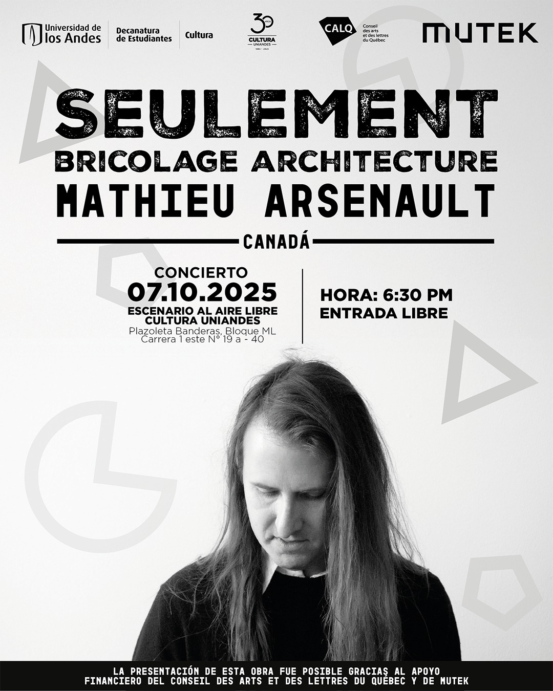 Plazoleta Banderas, Edificio Mario Laserna, Universidad de los Andes (carrera 1 este # 19 - 40) Ver mapaMathieu Arsenault presenta: Seulement