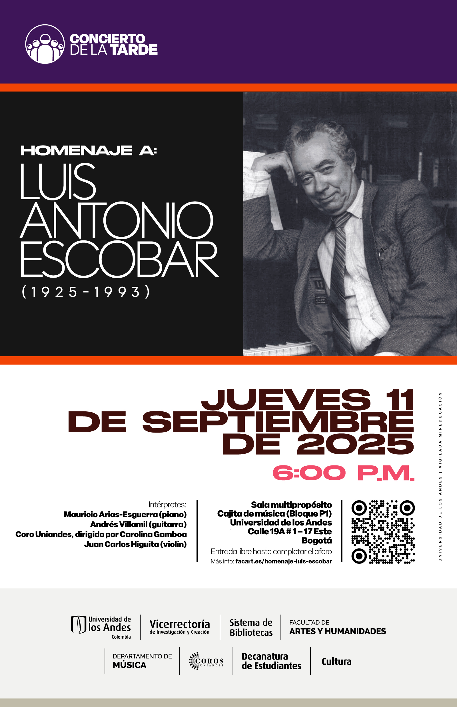 ¿Cuál ha sido o puede ser el papel de la música en escenarios de protesta y de resistencia? ¿En qué medida el activismo social ejercido desde la música y las artes en general ha sido o puede ser efectivo para confrontar o transformar estructuras de inequidad? ¿O por el contrario se trata solo de formas alternativas de expresión pero sin mayores repercusiones sociales evidentes? ¿Qué tiene que ver la tecnología con todo esto, especialmete al pensar en tendencias globales sobre el manejo de la información, mecanismos de vigilancia, el internet de las cosas, el uso y la manipulación de las redes sociales y los medios de comunicación, y los hábitos de escucha de plataformas de streaming digital? Estas son algunas de las preguntas que guiarán la clase abierta y el foro público que se titula “Música en la era digital: vigilancia, tecnología y resistencia”, que contará con la participación de Ingrid Bolívar, Santiago Cembrano, Hugo Idarraga y Sergio Ospina Romero, con la moderación de Alejandra Martínez Rico y Mariana Charry Esguerra. Se trata de un evento organizado por los estudiantes del curso “De Edison a Spotify”, de la Escuela de Posgrados de la Facultad de Artes y Humanidades de la Universidad de los Andes, y que dicta el profesor Sergio Ospina Romero. Todos están invitados a unirse a la clase en Zoom o a participar por medio de la transmisión del evento en vivo a través de las redes de la Facultad.